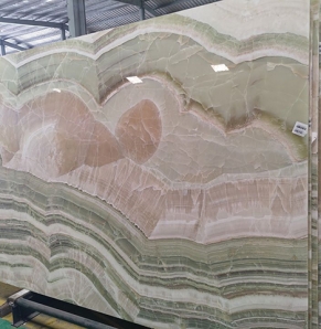 Đá onyx Tornado xuyên sáng giống như một cơn lốc xoáy màu sắc kem, xanh lá nhạt đầy ấn tượng. Một dòng đá cẩm thạch xuyên sáng đầy nhẹ nhàng nhưng cũng có thể nóng bỏng khi kết hợp với màu sắc đèn khác nhau.